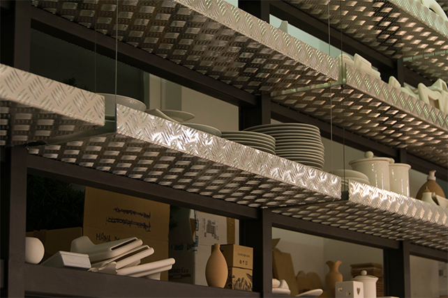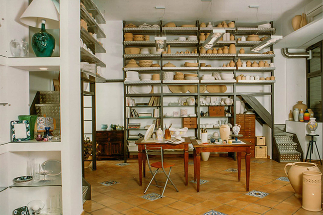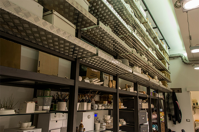 Progetto preliminare, definitivo ed esecutivo di un’attività artigianale. L’esigenza della committenza era quella di avere tre ambienti per l’esposizione dei prodotti realizzati artigianalmente, una zona didattica per i corsi di ceramica a vari livelli e un ambiente protetto con il forno per la cottura delle opere realizzate. Sono state realizzate nell’area d’ingresso, degli scaffali in cartongesso per l’esposizione degli oggetti creati illuminati da faretti posizionati all’interno. Un bancone espositivo divide l’ambiente con la zona didattica. Avendo il soffitto molto alto si sono progettate due librerie a giorno in profilati metallici destinate ad esposizione con soppalco posteriore accessibile da una scala laterale per poter posizionare sugli scaffali gli articoli molto delicati in modo più agevole.