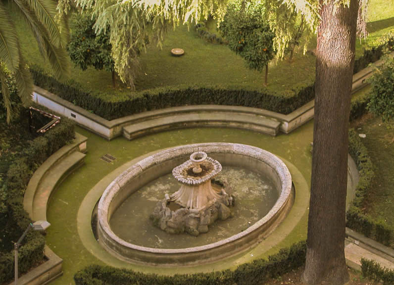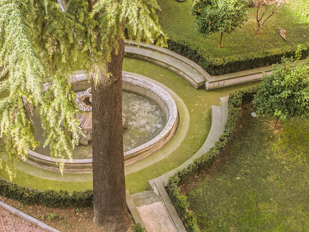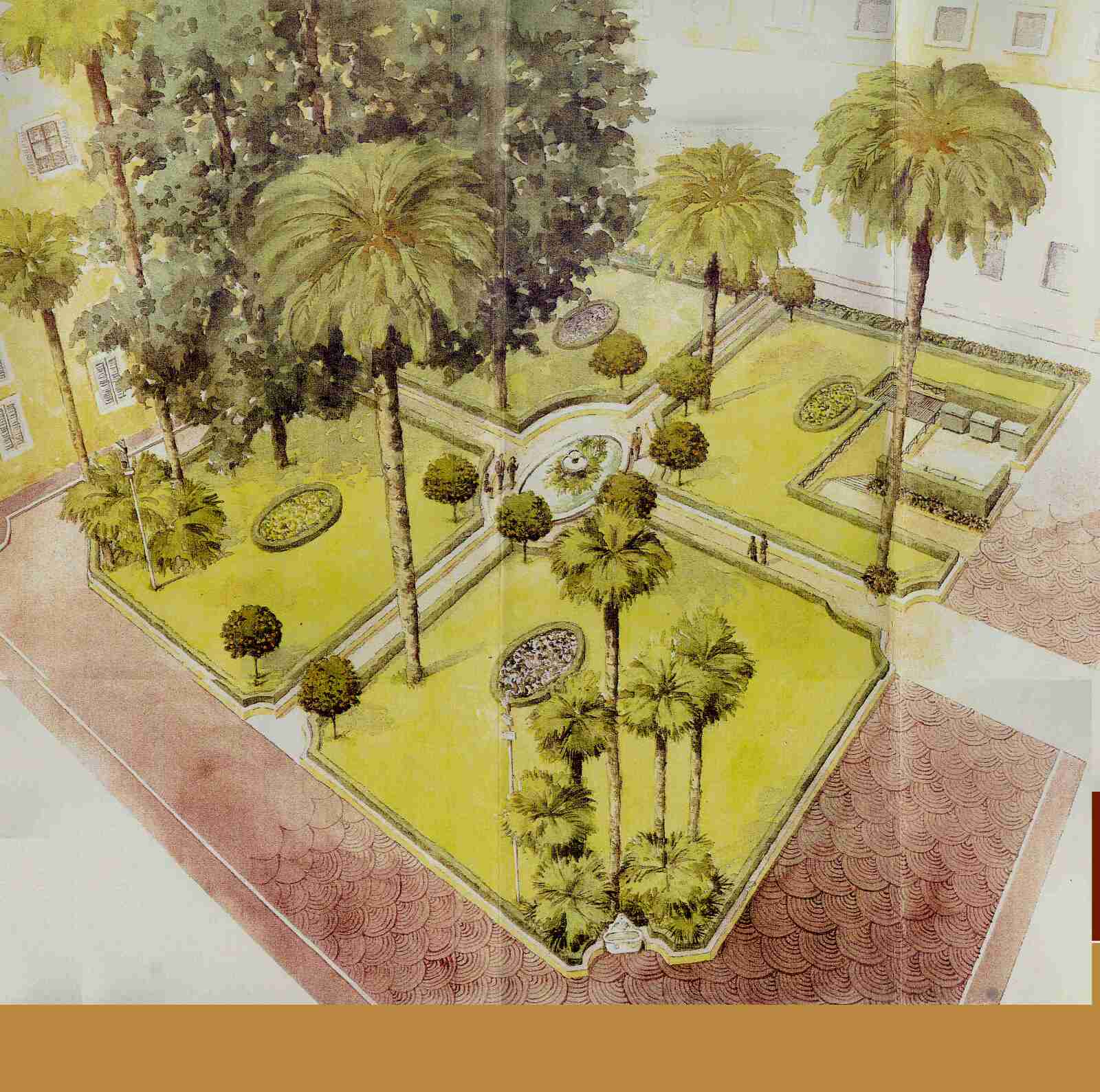 Attraverso una approfondita ricerca storica è stato individuato il disegno originale, proveniente dal catasto Gregoriano, che mostrava il tipico cortile all’italiana, con una divisione a croce e una fontana al centro.