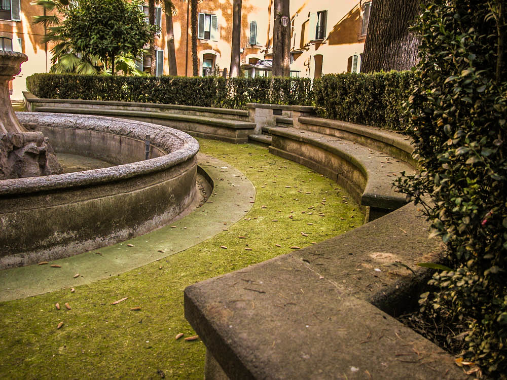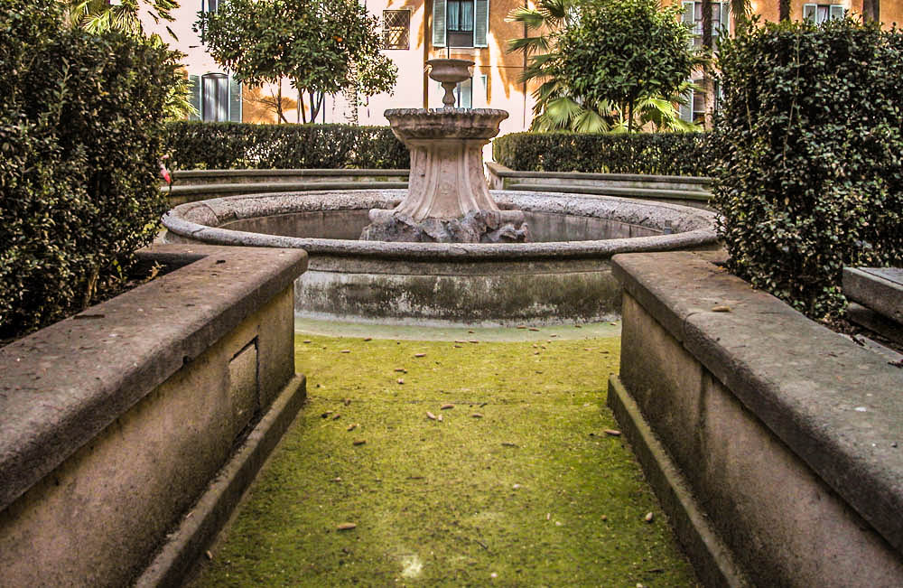Il giardino racchiuso tra la biblioteca Casanatense e palazzo San Macuto, è un importante giardino storico che è stato profondamente modificato nel secolo scorso, seguendo le tendenze dei giardini dell’epoca. Nel 1920, quando era sede del Ministero delle poste, fu realizzato un  giardino romantico inglese, con la variante dell’uso di palmacee (Phoenix canariensis e Washingtoniae e Chamaerops humilis), impronta mantenutasi fino al 1980.