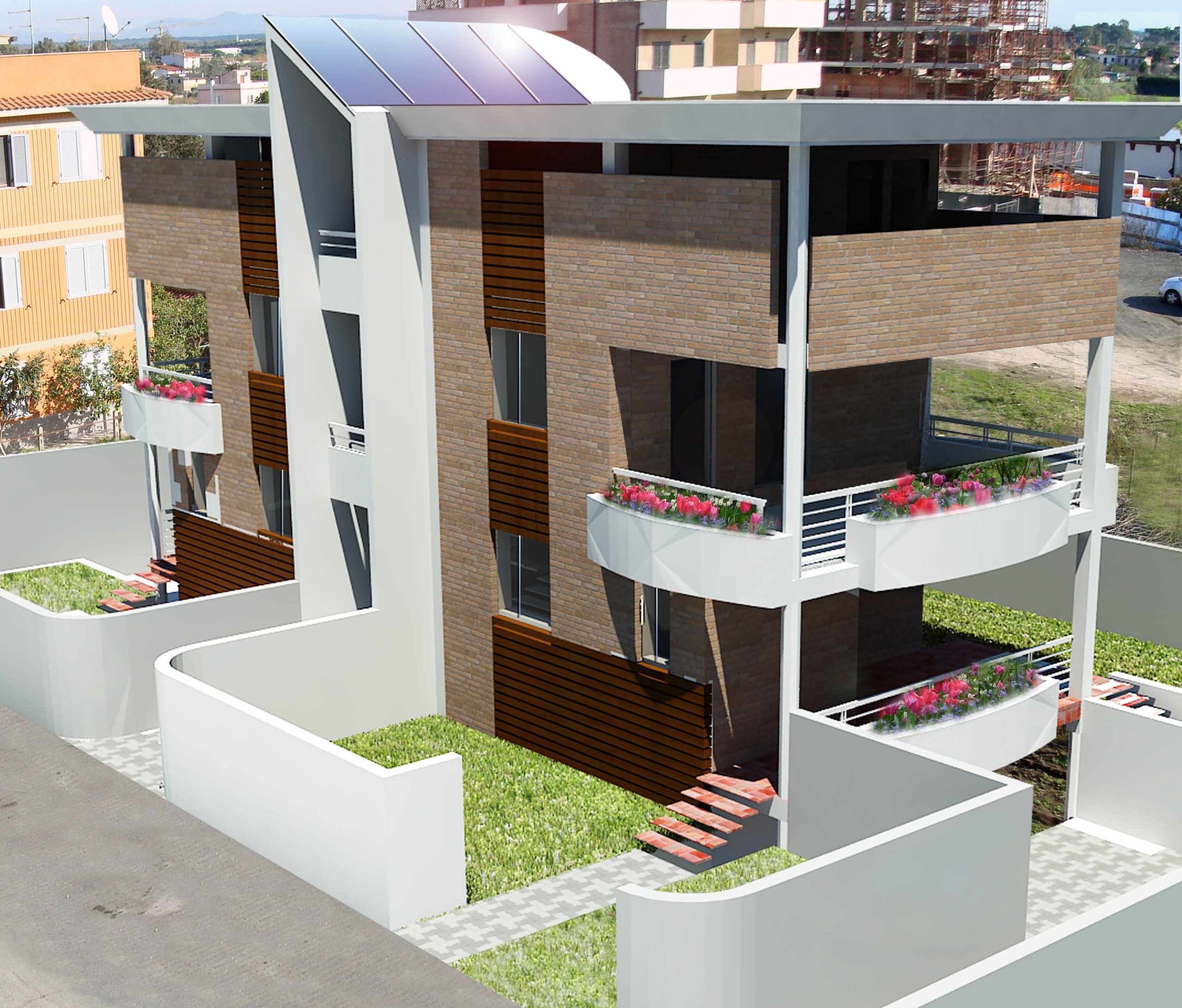 Nella progettazione è stata data la priorità soprattutto al contenimento dei consumi energetici con il contenimento della dispersione termica è stato infatti previsto l’utilizzo di materiali isolanti sulle pareti esterne e la possibilità di realizzare delle serre solari sui terrazzi.
