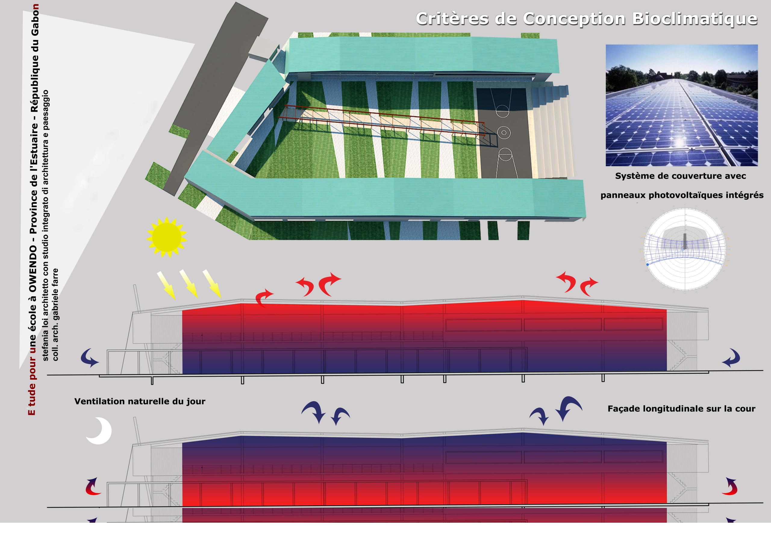 E’ stato esaminato a fondo il clima locale con la possibilità di sfruttamento del ricircolo dell’aria data la forte escursione termica giorno/notte. Per questo motivo le aule sono state collocate al piano terra mentre al primo piano hanno trovato posto i laboratori, una biblioteca e delle aule polifunzionali.