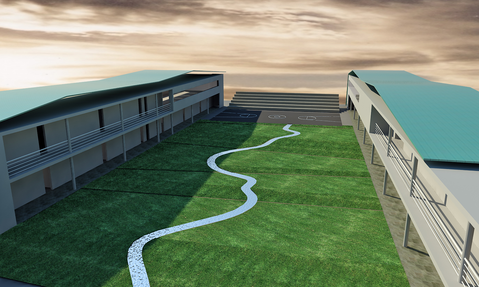 Sono stati previsti due corpi di fabbrica divisi da un impianto sportivo comune e da spazi verdi all’aperto attrezzati utilizzabili da tutti gli alunni.