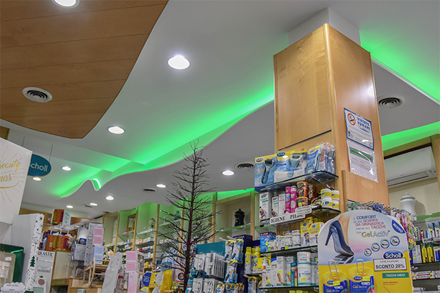 Progetto esecutivo e direzione lavori di un locale commerciale destinato a farmacia.  Il progetto ha previsto una totale riqualificazione degli ambienti, con l’obiettivo primario di adeguarli funzionalmente e migliorarne l’accessibilità ai disabili.