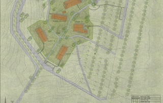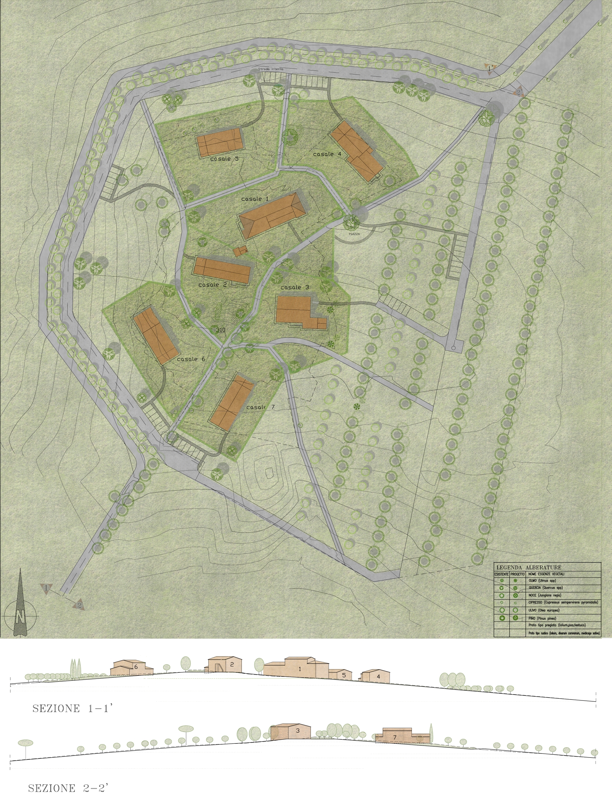 Il nucleo originale è costituito da tre grandi casali posti al centro dell’area di intervento; la demolizione delle superfetazioni che nei secoli erano state aggiunte ai tre nuclei originali ha consentito il recupero di cubature per realizzare altri quattro casali di minori dimensioni.